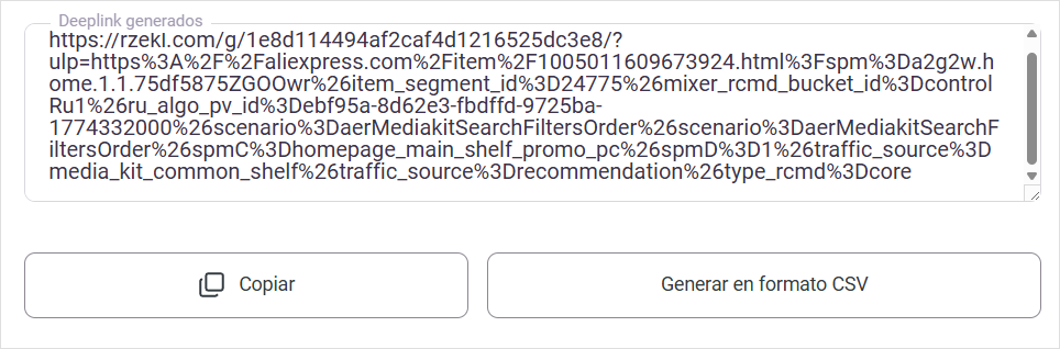 6. En el campo Deeplink generado aparecerán los deeplinks listos.