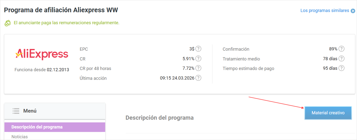 Algunos programas no admiten deeplinks. En este caso, solo puedes utilizar el enlace de afiliación estándar del programa. Cómo obtener el enlace de afiliación estándar