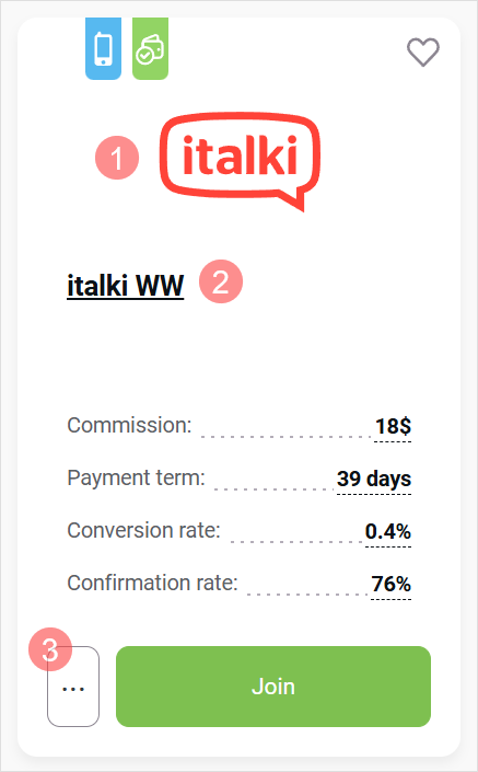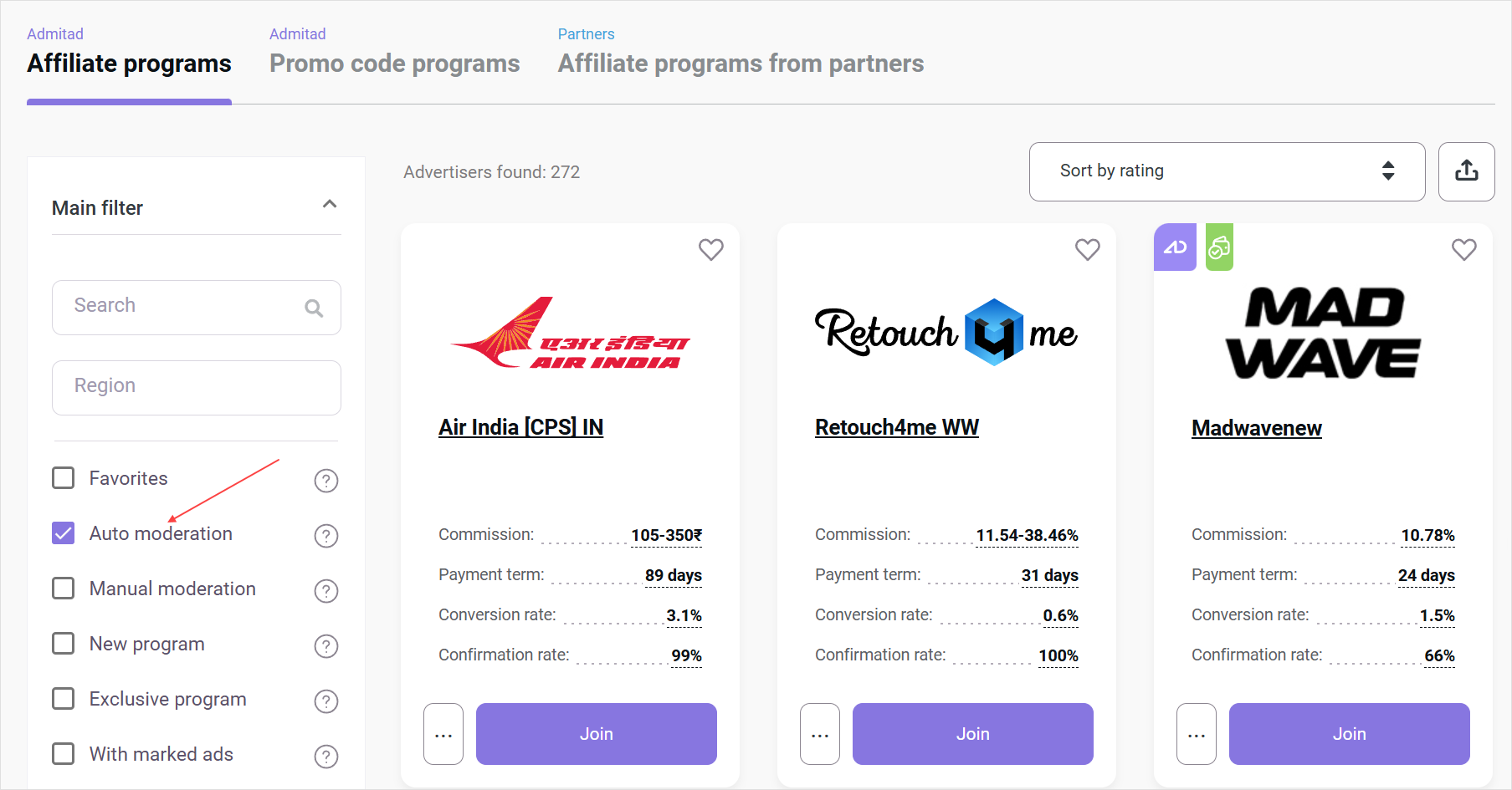 If you see the violet Join button in the program card, it means the program allows autoconnection.