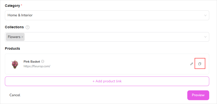 You can also copy the product link while creating a post by clicking the copy icon in the link field on the Add product link page.