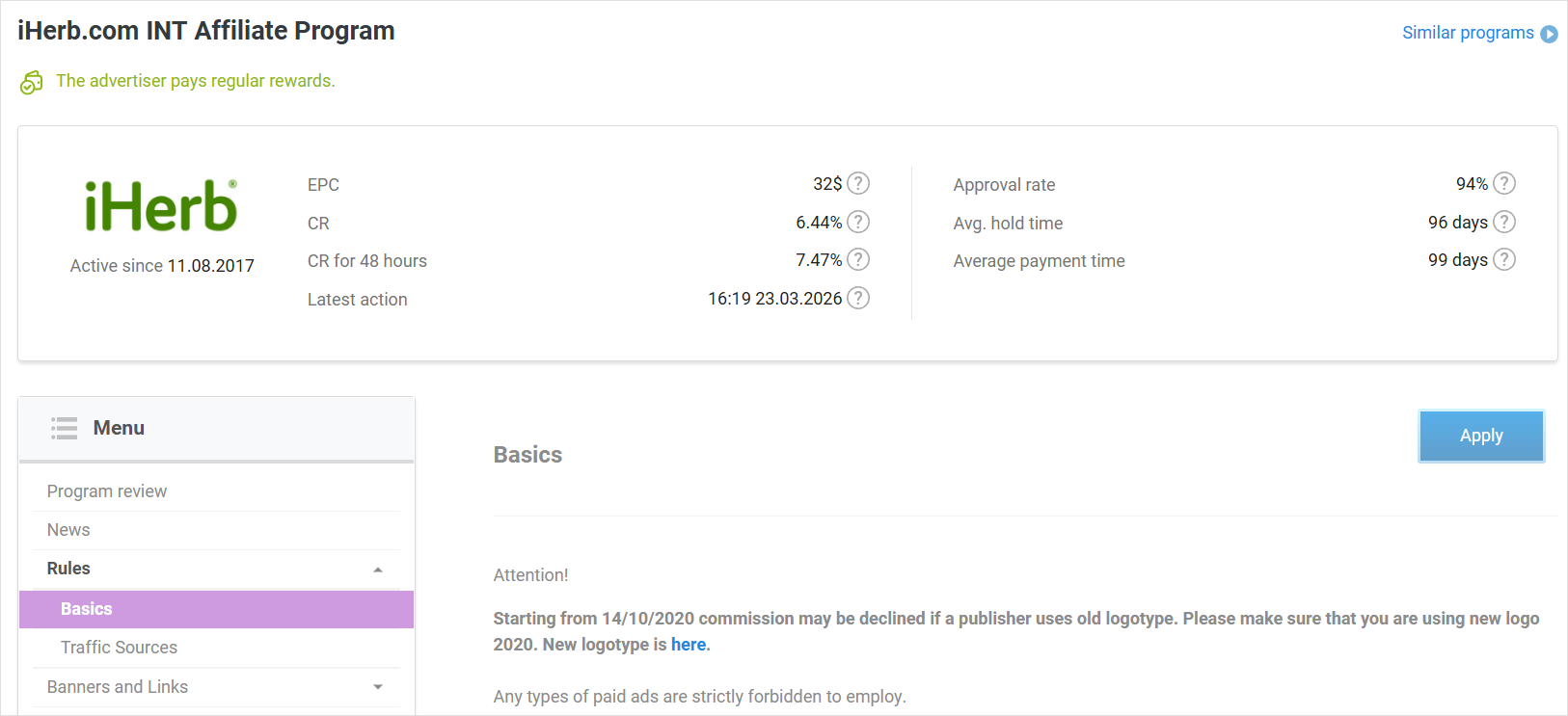 The rules for working with a particular program can be found on the program page (Menu → Rules).