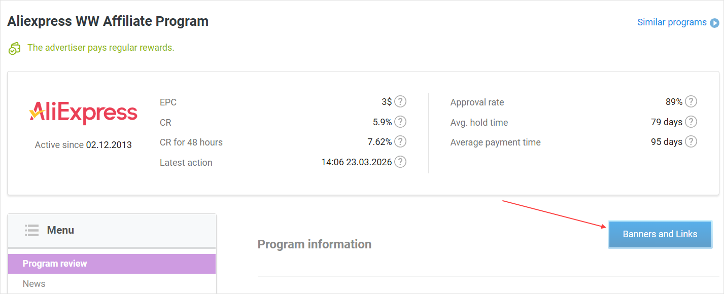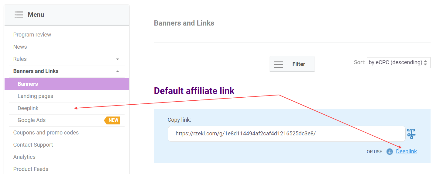 Generally, a standard affiliate link and a deeplink operate in the same way: in both cases, the link has unique identifiers that allow tracking target actions. Also, both an affiliate link and a deeplink can only be available if your ad space is connected to a program.