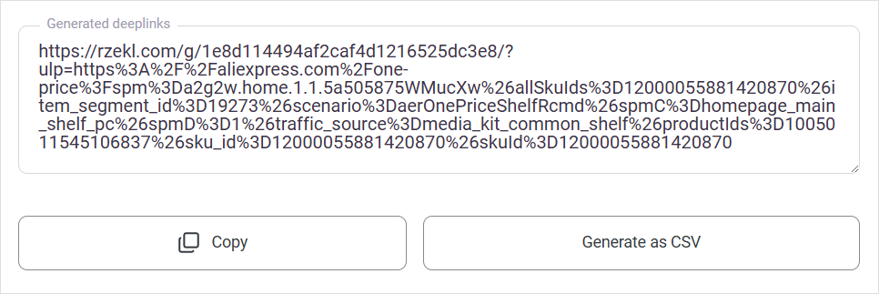 Deeplink is a kind of an affiliate link that leads to the page on the advertiser website you specified. For instance, it may lead to the page of a certain product, deal, or brand.
