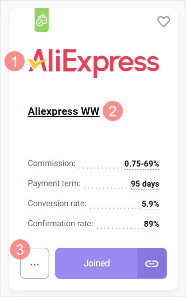 3. Find the program and go to its page. For that, hit the program logo (1), program name (2), or More button (3).