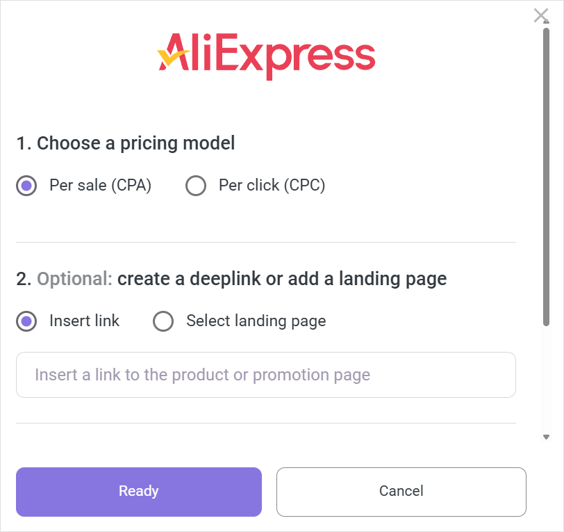 | How to get a link | Create on your own. How to create a deeplink | Copy the automatically generated link. How to get a standard affiliate link |