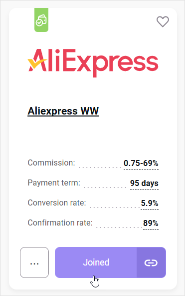 1. Go to Admitad Store and in the Status field, flag the Joined option.