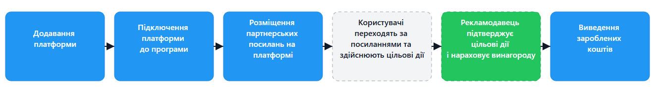 - Після підтвердження винагорода за цільову дію перераховується на баланс вебмайстра в Admitad.
