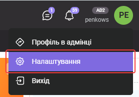 Облікові дані, які знадобляться для роботи з API, розміщені на вкладці API і додатки у налаштуваннях акаунта.