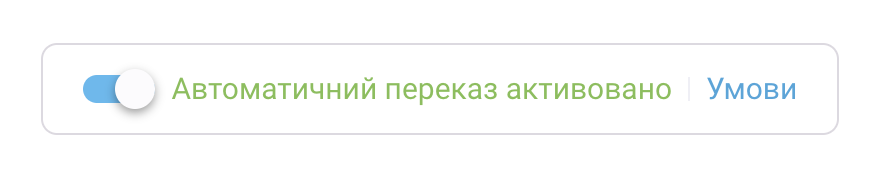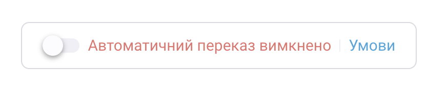 Щоб вимкнути автопереказ, знову натисніть на перемикач. Автопереказ перестане працювати через 14 днів з моменту вимкнення. Після цього ви зможете створювати заявки вручну.