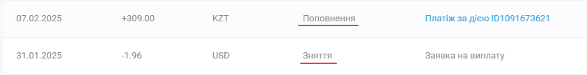 - Платіж за дією ID*** — означає, що рекламодавець підтвердив дію з ID***, і на баланс було зараховано винагороду за неї.