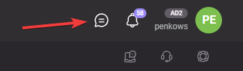 Ви можете перейти до вікна чату, натиснувши на іконку у правому верхньому куті у шапці особистого кабінету.
