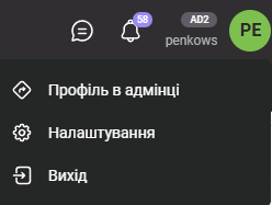 У правому верхньому куті також вказано ваш логін в Admitad. Наведіть курсор на логін, щоб перейти до налаштувань або вийти з акаунта.