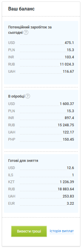 Спочатку баланс у всіх вебмайстерів нульовий. Щоб заробити, вам потрібно:
